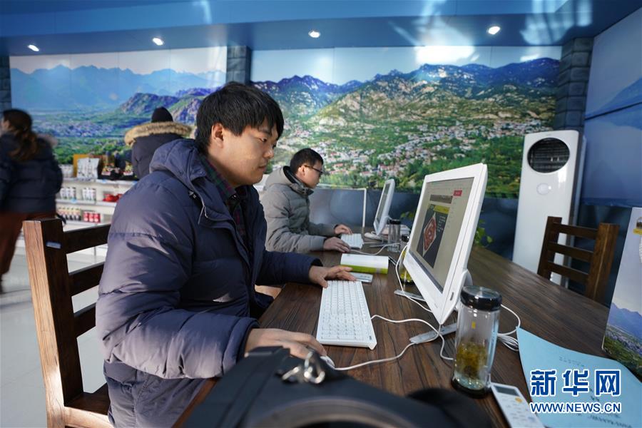 1月23日,山東省臨沂市費縣大田莊鄉黃土莊村的奇尚農村電商服務中心內一片忙碌,四五個年輕人點擊著鼠標,在網上處理著來自全國各地的訂單。