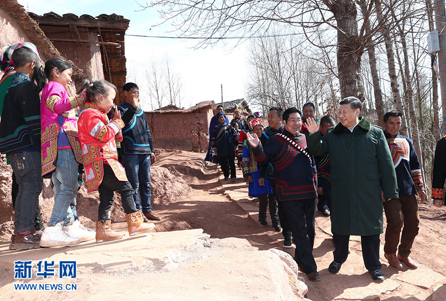 2月11日上午,習近平總書記驅車2個多小時,從西昌市來到位于大涼山深處的昭覺縣三岔河鄉(xiāng)三河村、解放鄉(xiāng)火普村,走進彝族貧困群眾家中,看實情、問冷暖、聽心聲,同當?shù)馗刹咳罕姽采叹珳拭撠氈摺P氯A社記者 謝環(huán)馳 攝