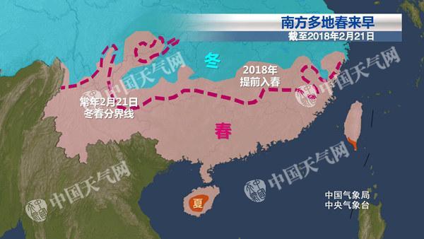 南方氣溫相對(duì)平穩(wěn),不過(guò)整體仍呈波動(dòng)上升,目前看,截至2月21日,江南南部、華南北部、四川盆地部分地區(qū)已經(jīng)成功入春,湖南中南部、江西中部都比常年同期提前見(jiàn)到了春姑娘。