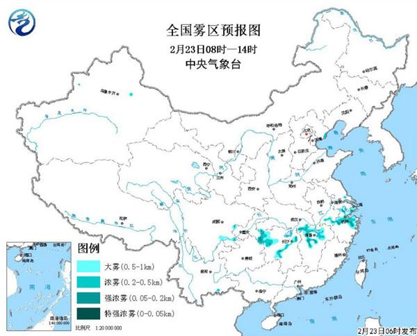 中央氣象臺(tái)今天6時(shí)繼續(xù)發(fā)布大霧黃色預(yù)警,預(yù)計(jì)今天早晨至上午,安徽南部、江蘇南部、浙江北部、江西北部、湖北東南部、湖南西北部和中部、四川盆地南部等地有大霧天氣,其中浙江北部、江西北部、湖南西北部和中部等地的部分地區(qū)有濃霧,局地能見(jiàn)度低于200米。