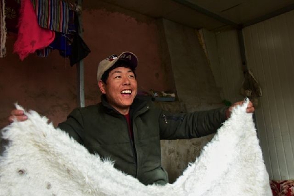 松多村鑲嵌在縣城城郊一條干涸的河谷上。這里干旱少雨,風吹黃土漫天,只能種些青稞、土豆為生。“那時我們家8口人,住的是土坯房,吃的是洋芋,人均耕地面積不足2畝,一年種的莊稼連來年買肥料的錢都不夠?!毙W還沒畢業,旦增加就輟學在家,重復著父輩的生活,不到20歲就結婚生子,同樣靠種地維持生計,日子卻越發捉襟見肘。