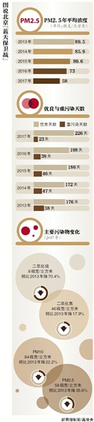 2013年9月,《北京2013-2017清潔空氣行動計劃》發布,北京正式向PM2.5宣戰。該計劃提出,到2017年,北京PM2.5年均濃度比2012年下降25%以上,措施力度空前。
