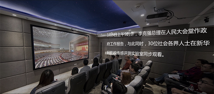 與此同時,30位社會各界人士在新華網(wǎng)影視傳感評測實驗室同步觀看