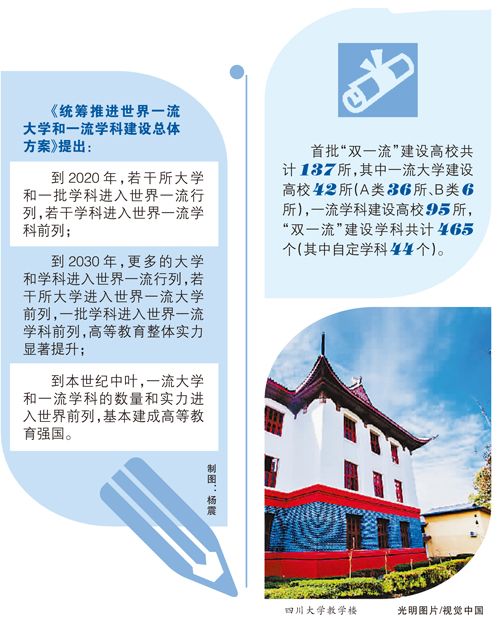 自2015年中央全面深化改革領導小組會議審議通過《統籌推進世界一流大學和一流學科建設總體方案》以來,“雙一流”一直是牽動眾多高校目光的關鍵詞:2017年9月,“雙一流”建設名單公布;2017年歲末,眾多入選高校紛紛公布自己的一流大學建設方案,“雙一流”建設正式破土動工;今年政府工作報告提出,以經濟社會發展需要為導向,優化高等教育結構,加快“雙一流”建設,支持中西部建設有特色、高水平大學。