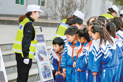 山西翼城縣交警走進轄區匯豐學校宣講交通安全知識,幫助孩子們養成文明出行的良好習慣。劉偉 攝(人民視覺)