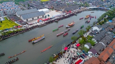 3月31日,航拍六道口村,主干道約兩公里的街道兩旁都是賣殯葬用品的店。