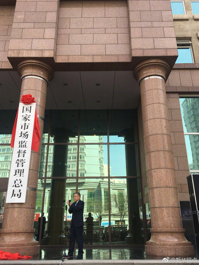 新組建的國(guó)家市場(chǎng)監(jiān)督管理總局4月10日正式掛牌。張茅任局長(zhǎng)、畢井泉任黨組書記。國(guó)家藥品監(jiān)督管理局同日揭牌,由國(guó)家市場(chǎng)監(jiān)督管理總局管理。(新華社“新華視點(diǎn)”微博)