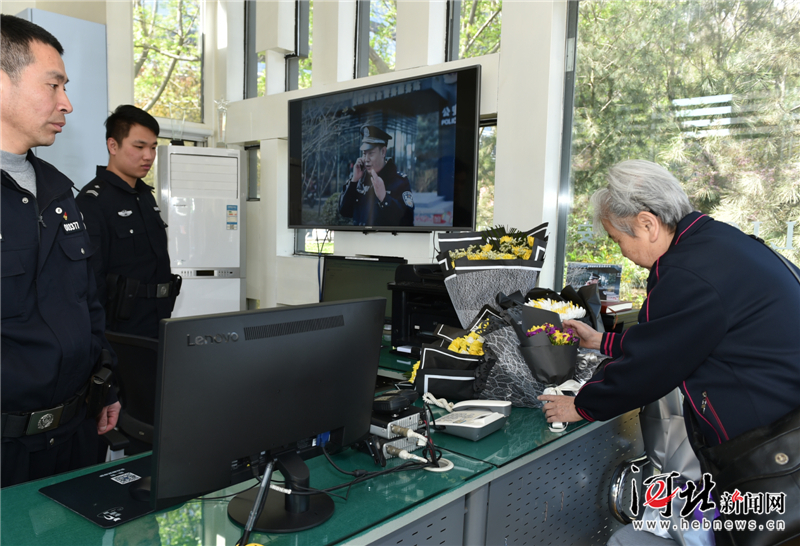 4月6日,一位市民來到石家莊市呂建江綜合警務服務站,在呂建江同志生前工作過的地方送上一束鮮花寄托哀思。