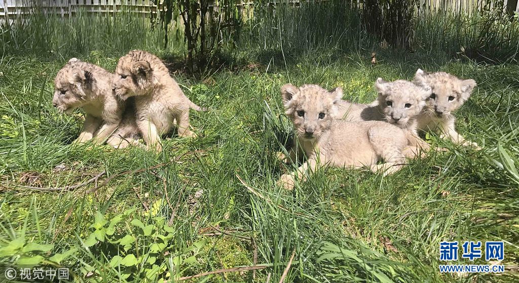 4月17日,在貴州森林野生動物園珍稀動物區(qū),記者見到了5只剛出生的小獅子。5只小非洲獅合影。(圖片來源:視覺中國)