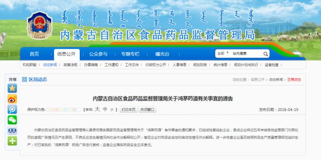 內(nèi)蒙古自治區(qū)食品藥品監(jiān)督管理局認(rèn)真貫徹落實(shí)國(guó)家藥品監(jiān)督管理局關(guān)于“鴻茅藥酒”有關(guān)事宜的通知要求,已組成檢查組赴企業(yè),責(zé)成企業(yè)將近五年來(lái)被各地監(jiān)管部門對(duì)其處罰的虛假?gòu)V告情況及產(chǎn)生原因、不良反應(yīng)發(fā)生等情況向社會(huì)作出解釋和公開;督促企業(yè)對(duì)藥品安全性和有效性情況作出解釋。進(jìn)一步核查企業(yè)是否按照藥品生產(chǎn)質(zhì)量管理規(guī)范組織生產(chǎn);對(duì)已審批的“鴻茅藥酒”藥品廣告進(jìn)行復(fù)核;監(jiān)督企業(yè)落實(shí)藥品安全主體責(zé)任。