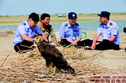 ▲2017年8月15日,達賚湖公安分局民警救助白腹鷂。新華社記者李云平攝