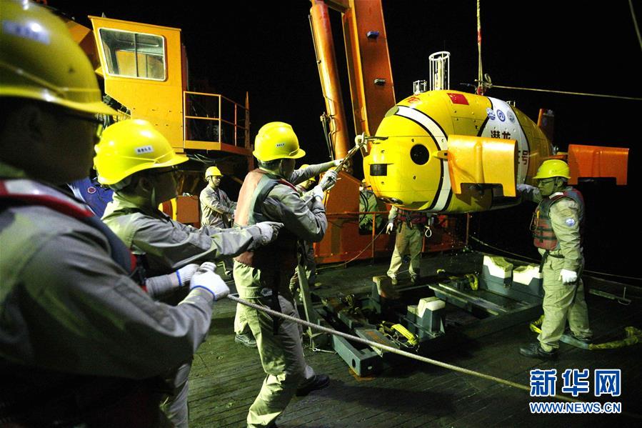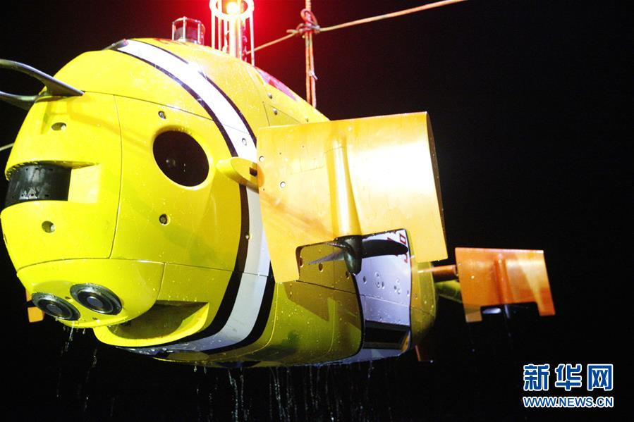4月28日,“潛龍三號”完成南海航段最后一潛,科考隊員將其回收至母船。當日4時38分,“潛龍三號”在夜色中回到“大洋一號”母船甲板,順利完成其試驗性應用第二潛。航行38小時、航程121.3公里。這也是“潛龍三號”在“大洋一號”船綜合海試B航段的第四潛和最后一潛。新華社記者 劉詩平 攝