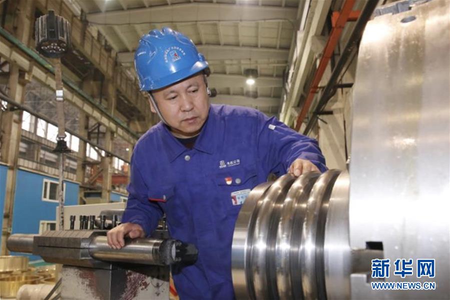 “首屆中國質量工匠”、哈爾濱電機廠有限責任公司車工裴永斌在車間工作(資料照片)。新華社發(fā)