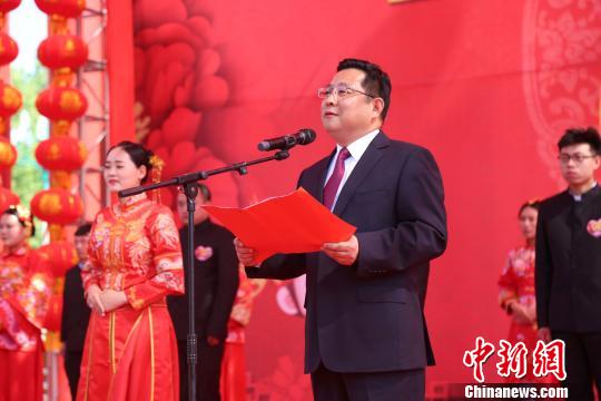 永城市委書記、市長李中華親自到場為新人們證婚。 戴劍 攝