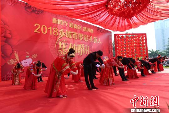 5月4日是五四青年節,當日上午,以“新時代、新青年、新風尚”為主題的河南永城市2018“零彩禮”新人集體婚禮在該市人民廣場隆重舉行。來自全市的18對新人以“零彩禮”集體婚禮的形式步入幸福的婚姻殿堂,致敬青春。