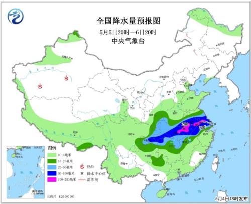 全國降水量預報圖(5月5日20時-6日20時) 圖片來源:中央氣象臺