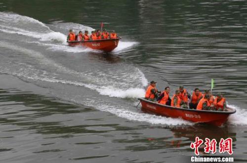 4月28日,一場實戰化防汛應急救援聯演聯訓在福建三明永安市貢川鎮有序展開。胡鑫 攝
