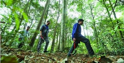 貴州省佛頂山國家級自然保護區包溪管理站的護林員在巡護。新華社發