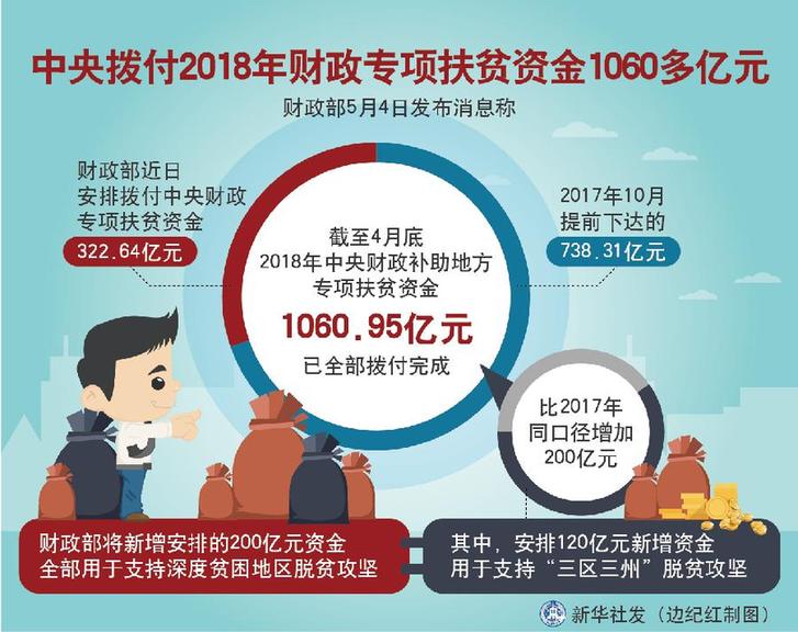 中央撥付2018年財政專項扶貧資金1060多億元;