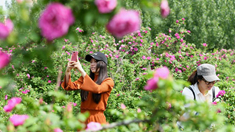 各色花朵裝扮甘肅戈壁小城