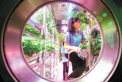 劉紅介紹,“月宮365”實驗在世界上首次建立了系統長期穩定運行的生物調控技術,并通過實驗過程中不同代謝水平的乘員組換班更替、停電及設備故障沖擊等突發狀況驗證了該技術的有效性;分析了不同工作狀況下生物再生生命保障系統的穩定性,明確了影響生物再生生命保障系統的可靠性的關鍵因素;發現了在幽閉空間中自然光制度變換對人的生物節律和情緒的影響規律, 發明了模擬自然光變換調節人體生物節律和情緒的技術和設備;并建立了植物長期連續高效栽培技術、營養液長期循環利用凈化和調配技術。