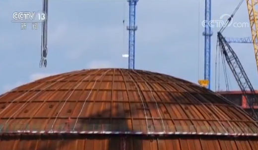 央視記者 李廈:我現(xiàn)在是在廣西防城港核電站華龍一號機組的施工現(xiàn)場,我身后這個龐然大物就是即將進(jìn)行吊裝的華龍一號機組的穹頂,它的體積十分的巨大,直徑達(dá)到了45米,起吊重量超過了260噸,就是這么一個大家伙,它即將從這里起吊,將吊裝到在我們不遠(yuǎn)處高度約45米的核島廠房的頂部,這也標(biāo)志著華龍一號英國示范項目將進(jìn)入到新的階段。