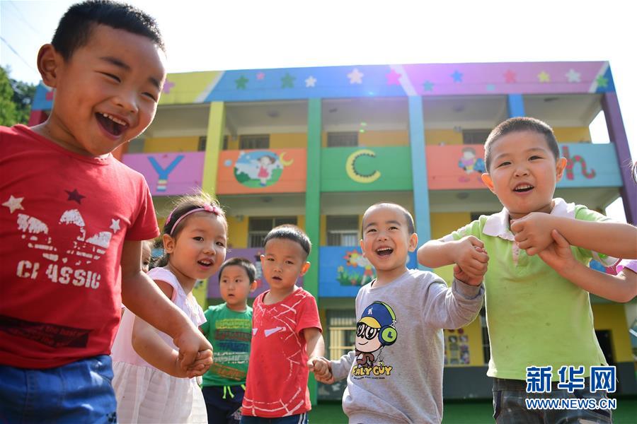 陜西省安康市漢濱區雙龍鎮杜壩村五四小學附設幼兒園小朋友們在操場上做游戲(2017年6月16日攝)。這個幼兒園使用貸款資金翻修改造而成,有效解決了該村及周邊兒童學前教育缺失的問題。新華社記者 邵瑞 攝