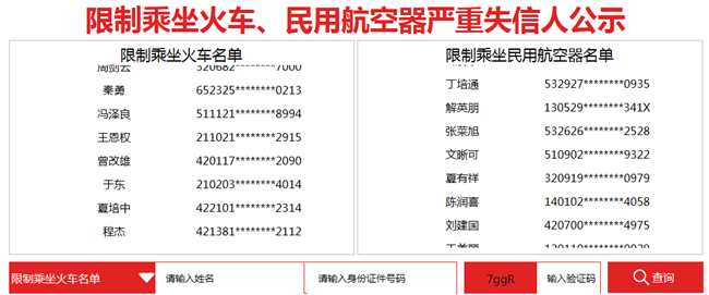 5月1日,國家發改委、鐵路總公司、民航局等部門聯合發布的《關于在一定期限內適當限制特定嚴重失信人乘坐火車 推動社會信用體系建設的意見》和《關于在一定期限內適當限制特定嚴重失信人乘坐民用航空器 推動社會信用體系建設的意見》正式實施。與此同時,中國鐵路總公司發布的《關于限制鐵路旅客運輸領域嚴重失信人購買車票的管理辦法》同步實施。