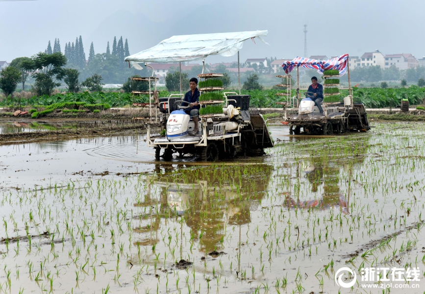 武義縣王宅鎮陶宅村種糧大戶方曉輝忙著插種單季稻。