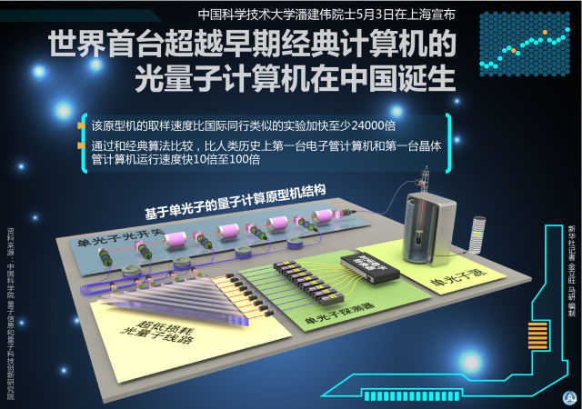 2017年5月3日,世界首臺超越早期經(jīng)典計(jì)算機(jī)的光量子計(jì)算機(jī)在中國誕生 (新華社記者 金立旺 馬研 編制)