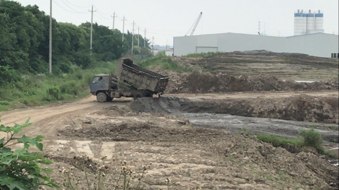 圖4 督察人員檢查時,一輛翻斗車開來傾倒泥漿