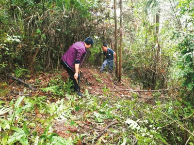 隨后,他們一行走訪了這座“亂墳山”。由于常年難有人來,上山的路頗為難走,加之草木太多,走不了幾步就得靠刀斧來開道。