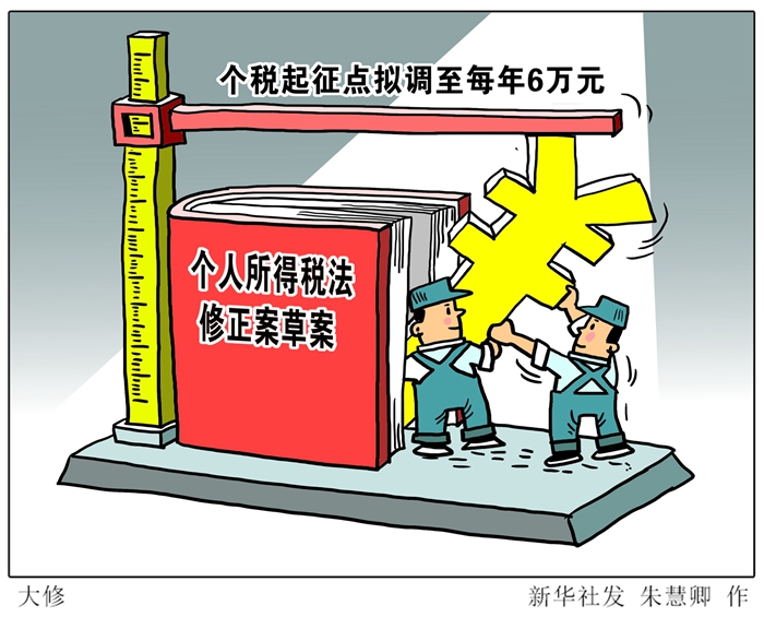 6月19日提請全國人大常委會初次審議的個人所得稅法修正案草案明確規(guī)定:對部分勞動性所得實行綜合征稅;優(yōu)化調(diào)整稅率結(jié)構(gòu);綜合所得基本減除費用標準,即通常說的起征點,提高至5000元/月(6萬元/年);首次增設(shè)專項附加扣除……這標志著我國建立綜合與分類相結(jié)合的個人所得稅制改革邁出實質(zhì)性的一步。新華社發(fā) 朱慧卿 作
