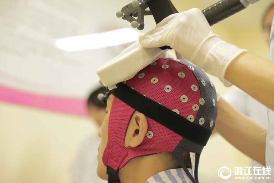 6月26日,浙江拱宸強制隔離戒毒所內,戒毒人員通過腦電技術和VR技術輔助戒毒。這些黑科技可以讓戒毒人員身臨其境地體會到吸毒的危害,從心理上減弱對毒品的依賴。(浙江在線記者 錢璐斌 徐文迪 攝)