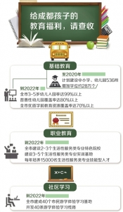 在增加教育公共服務(wù)供給方面,成都市全面實(shí)施中心城區(qū)中小學(xué)、幼兒園“三年攻堅(jiān)”行動(dòng)計(jì)劃,至2020年計(jì)劃建設(shè)中小學(xué)、幼兒園536所,增加學(xué)位約28萬個(gè),滿足市民公共教育服務(wù)需求。進(jìn)一步擴(kuò)大學(xué)前教育資源總量,鼓勵(lì)扶持普惠性幼兒園。到2022年,全市3-5歲幼兒入園率達(dá)99%以上,普惠性幼兒園覆蓋率(公辦幼兒園和普惠性民辦幼兒園在園幼兒數(shù)占在園幼兒總數(shù)的比例)達(dá)80%以上,全市優(yōu)質(zhì)學(xué)前教育資源覆蓋率(二級(jí)園以上在園幼兒數(shù)占在園幼兒總數(shù)的比例)達(dá)70%以上。