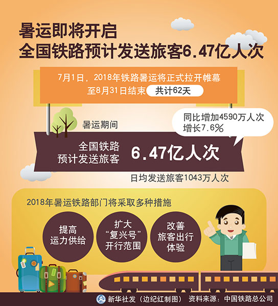 圖表:暑運即將開啟 全國鐵路預計發送旅客6.47億人次 新華社發 邊紀紅 制圖