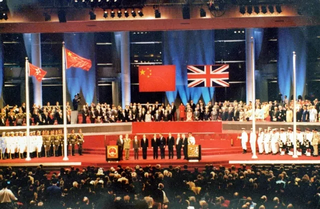 1997年6月30日至7月1日凌晨,中英香港政權交接儀式在香港會展中心舉行。新華社發