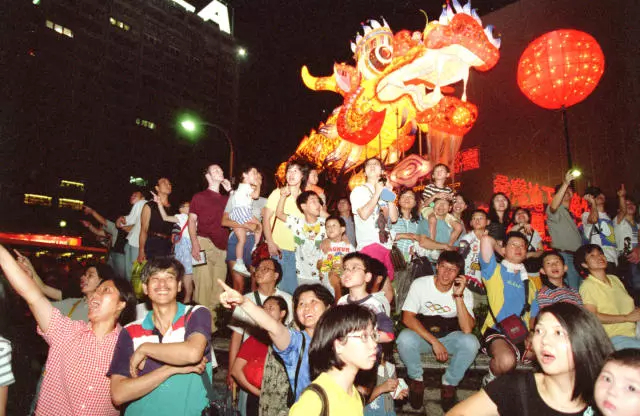1997年7月1日晚,香港特區政府為慶祝香港回歸舉行萬丈光芒慶回歸煙花會。圖為觀賞煙花的香港市民。新華社發