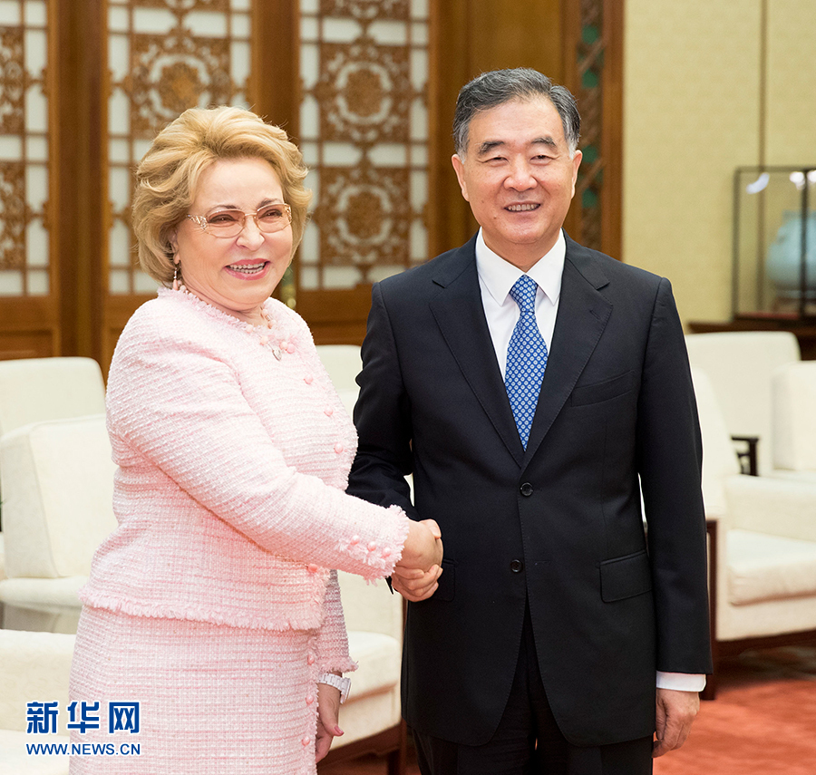 7月5日,全國政協主席汪洋在北京人民大會堂會見俄羅斯聯邦委員會主席馬特維延科。 新華社記者黃敬文攝