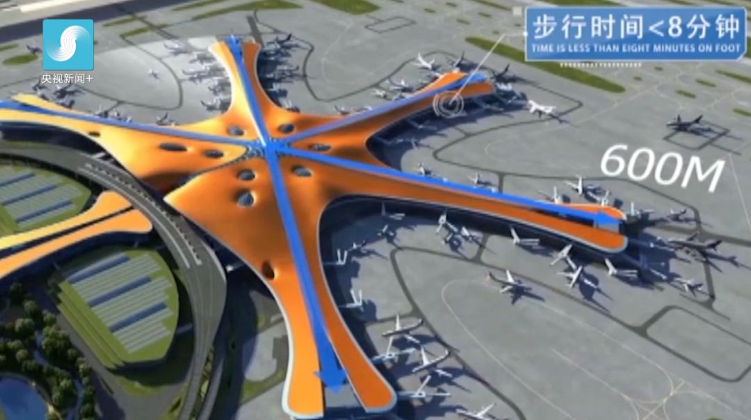 北京新機(jī)場航站樓的外型被形容為鳳凰展翅,看上去也像是五指張開。