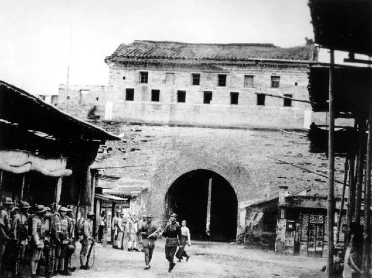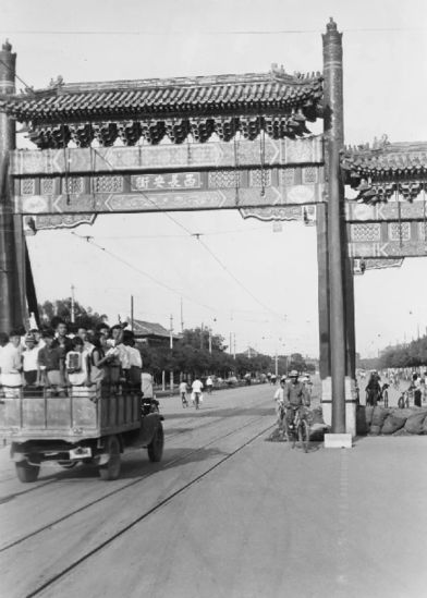 盧溝橋事變后的第二天,宛平城門(mén)口警戒的士兵和入城的民眾