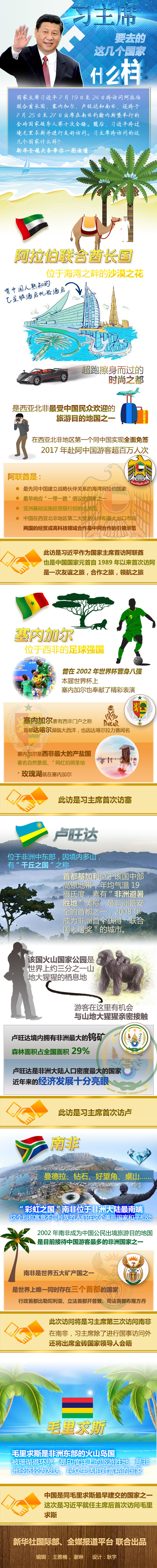 季夏之月,赴萬里之約。7月19日至28日,習近平主席將對阿聯酋、塞內加爾、盧旺達和南非進行國事訪問,出席在南非約翰內斯堡舉行的金磚國家領導人第十次會晤,過境毛里求斯并進行友好訪問。