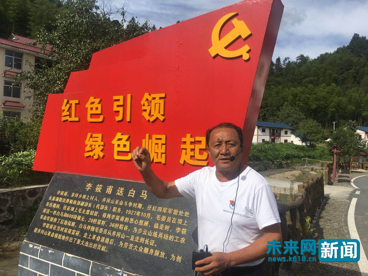 井岡山市茅坪鄉壩上村村民李祖芳講解紅軍故事。未來網記者 楊佩穎 攝