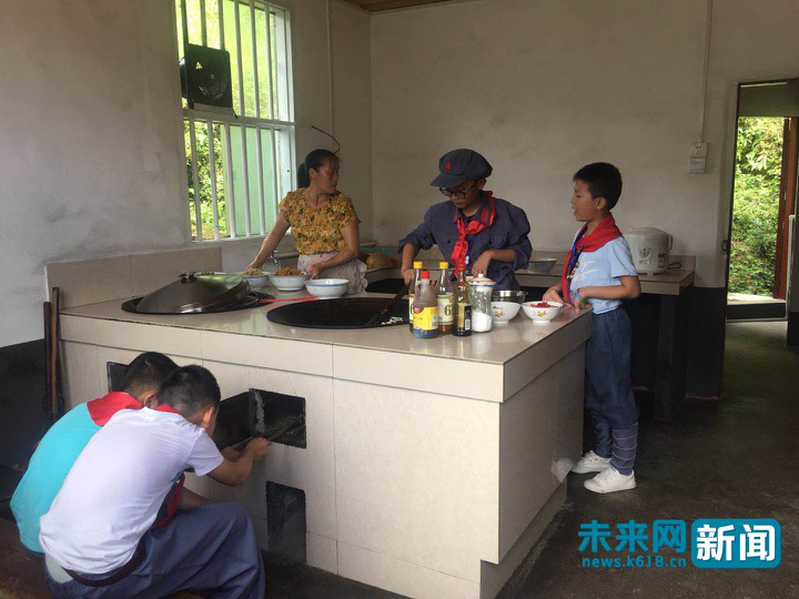 前來井岡山茅坪鄉壩上村體驗“紅軍的一天”教育的小學生自己動手做飯。未來網記者 楊佩穎 攝