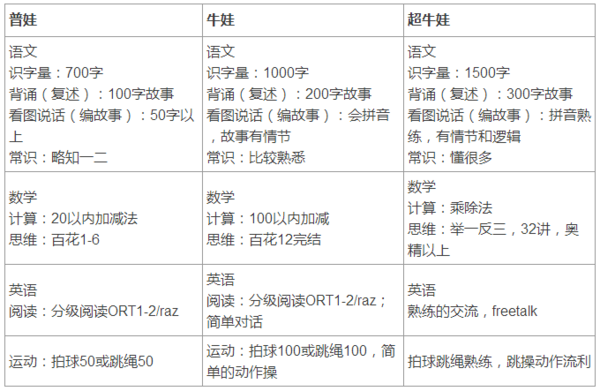 在許多存在“小學化”傾向的幼兒園和社會培訓機構內,“幼小銜接”被等同于知識的銜接,要求孩子提前學習漢語拼音、加減法和英語單詞等等。網絡上甚至流傳著一份“幼升小普娃牛娃配置表”,將處于“幼升小”階段的孩子依據掌握的語文、數學等方面的知識多少劃分為“普娃”、“牛娃”和“超牛娃”。這樣的認知無疑是極為片面的。過早進行知識性的學習,強調知識輸入,短期內可能讓孩子獲得了入學的優勢。但如果把眼光放長,則是撿了芝麻丟了西瓜。