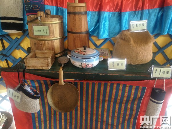 蘇·呼格吉勒圖愛好收藏,在他的“牧人之家”里,有個獨特的蒙古包“展廳”。里面滿是牧民生產工具和生活用品,接羊羔的氈口袋、做酸奶的竹筒、弓箭、燭臺、皮口袋、搖籃……“我想讓更多的人了解我們的傳統民俗文化。”只要有機會,他便會向外地游客展示蒙古族的游牧文化。“游客來了總忍不住想摸一摸。”
