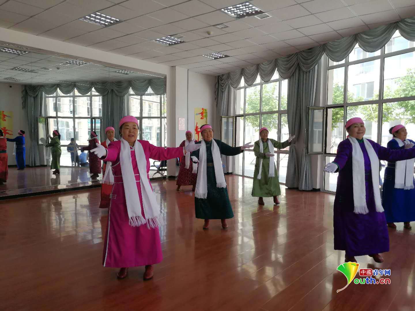 愛祺樂牧民養老園區內的老人們在進行歌舞表演。中國青年網記者王曉蕓 攝
