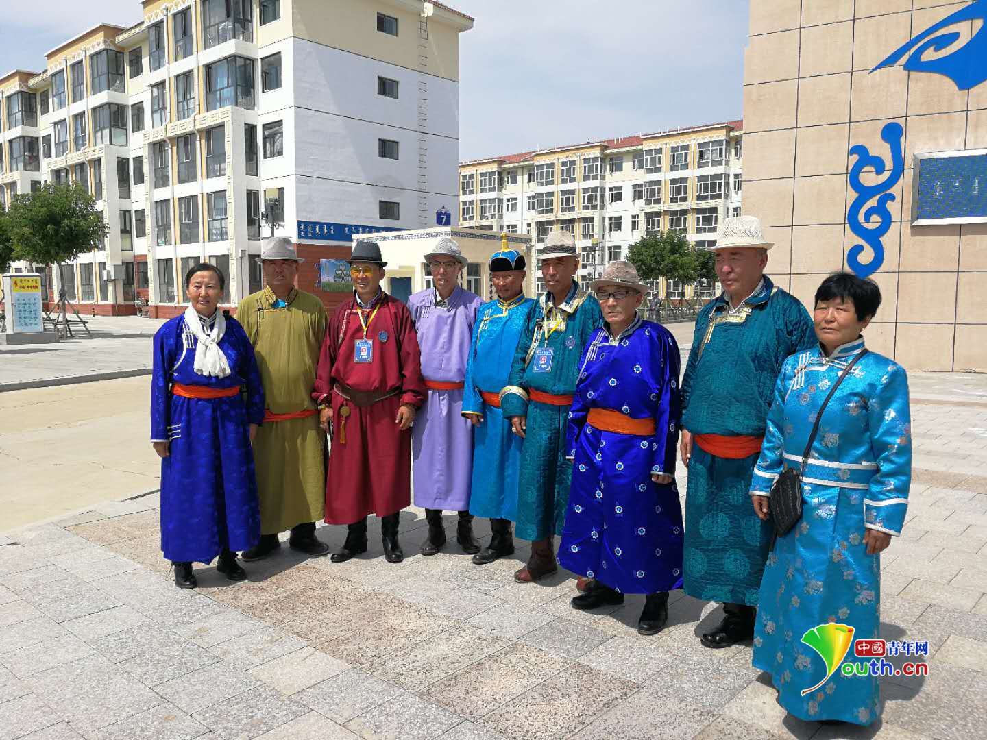 黃德才老人與同嘎查的老人們一起在愛祺樂牧民養老園區內合影。中國青年網記者王曉蕓 攝