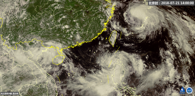 在季風槽影響下,今年第10號臺風“安比”、北部灣熱帶低壓(復活后的第9號臺風“山神”)以及臺灣東部洋面的熱帶低壓,呈現“三臺”共舞的景象。 國家衛星氣象中心 供圖