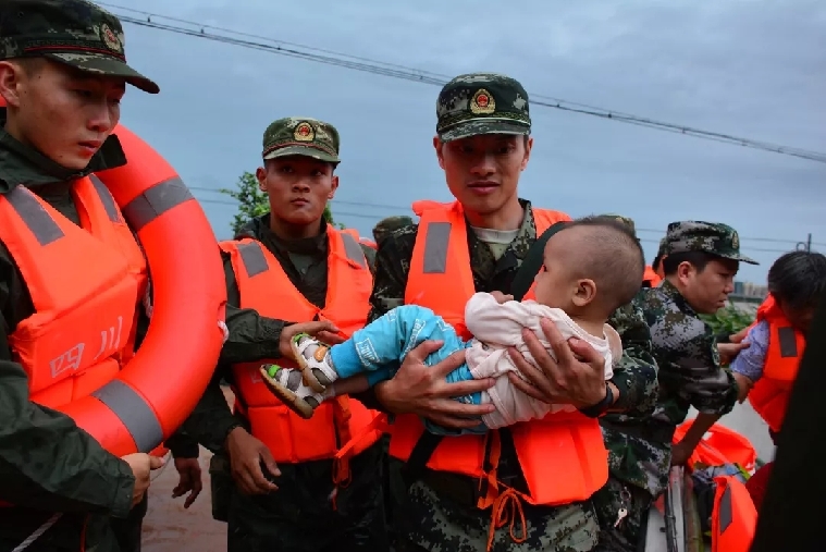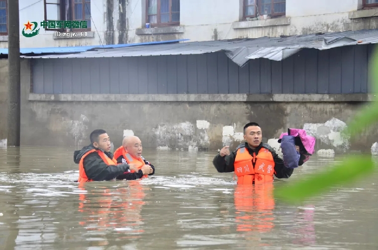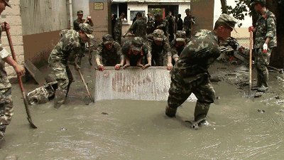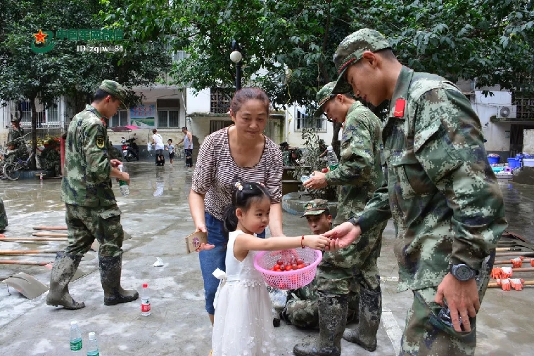 群眾自發為救災官兵送西瓜。劉學功 攝
